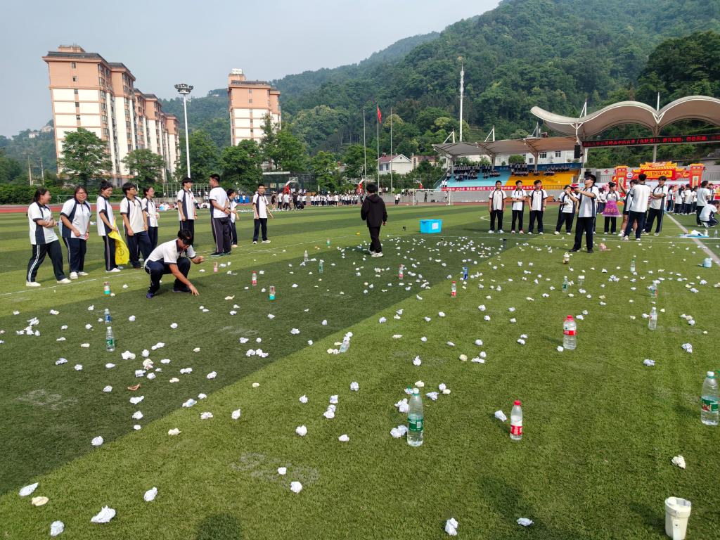 素质拓展活动内容丰富,形式活泼,主要分为“挑战150”、“珠行万里”、“极速60秒”、“沙场点兵”等,充分体现了团队小组的协作分工、坚持不懈、思维逻辑等能力。其中还设置了桃花朵朵开、松鼠大树地震、扯龙尾、眼疾手快等游戏环节,现场气氛活跃。各班班主任全程陪同,和同学一起奔跑,一起欢呼,并不断地为同学们加油鼓劲。