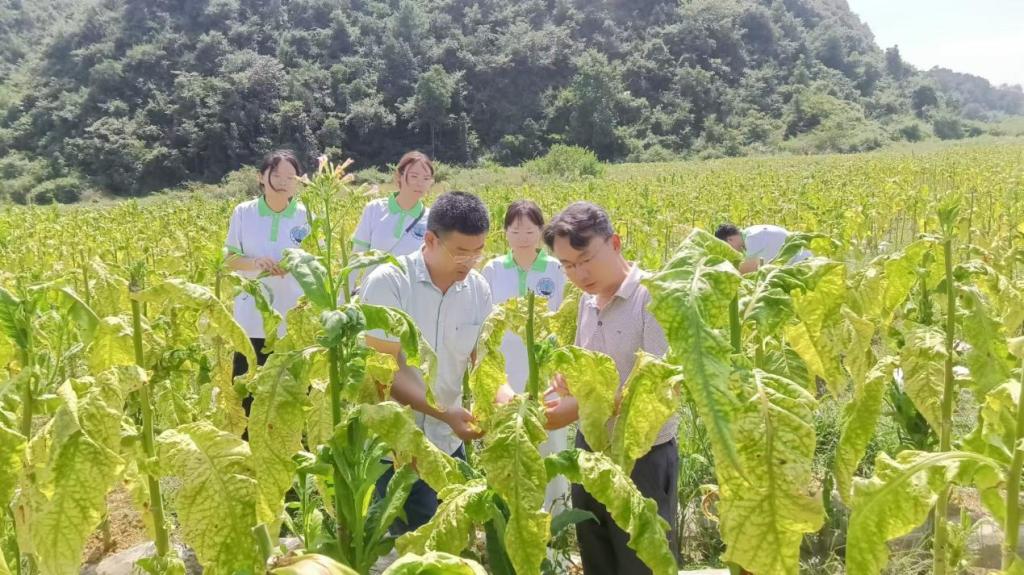 随后,考察团队转战至贵州安顺烟区,进行了一次充满意义的农业调研与技术服务之旅。在安顺市烟草公司,实践队首先与安顺市烟草公司技术中心和烟叶生产经营中心的领导与技术专家进行了交流座谈,简单汇报了项目当前进展及前期共同研发的烟草病毒相关检测产品进展,并协商了在安顺烟区的实践行程。