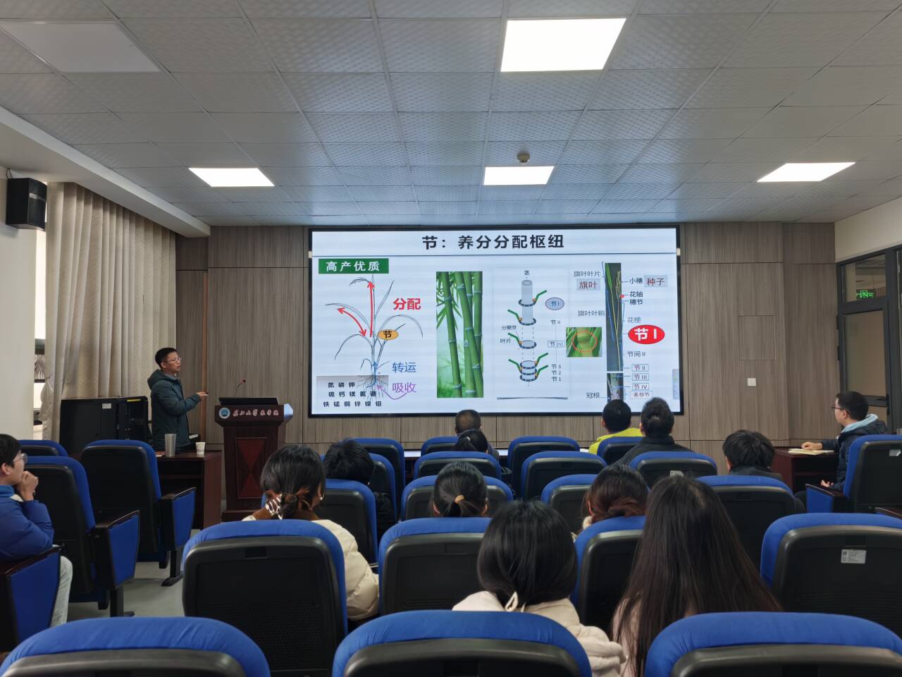 车景研究员长期致力于植物在酸性土壤条件下的适应性机理以及水稻矿质元素分配机制的研究。报告伊始,车研究员以全国酸性土壤分布的广泛性及其对农业生产的重大影响为切入点,深入浅出地阐述了研究植物适应酸性土壤逆境的紧迫性和重要性。他指出,酸性土壤中的铝毒与低养分利用效率极大限制农作物生长、产量及品质,剖析作物应对胁迫分子机制对于培育耐酸性土壤作物新品种、提高酸性土壤地区农业生产力具有极为关键的意义。
