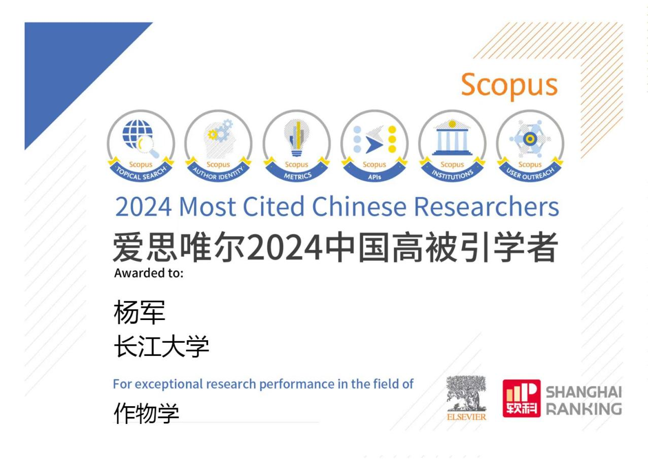 (通讯员 王雪)3月25日,全球权威学术出版机构爱思唯尔(Elsevier)发布2024年度“中国高被引学者”(Highly Cited Chinese Researchers)榜单,永利3044集团官网杨军副教授入选。