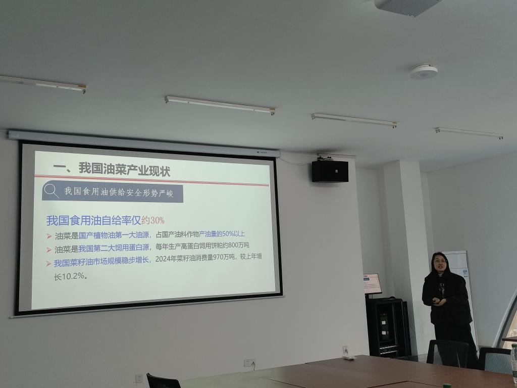 徐劲松副教授与谢伶俐副教授分别以稻田油菜产量提升的有效育种策略与我国油菜育种研究进展为题,汇报了目前该领域的研究进展与当前团队取得的成果,并针对当前长江流域因水稻技术变化导致季节矛盾突出与我国油菜当前产业现状、种业发展趋势以及当前生产实际中亟需解决的问题,提出有效的解决路径。