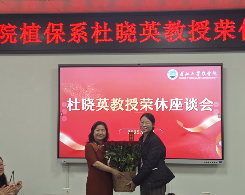 (通讯员 周静)2025年11月4日下午,永利3044集团官网在农科大楼3064会议室为杜晓英教授举办了一场温馨的荣休座谈会。公司领导班子与全体植物保护系教师参加了本次座谈会,会议由植保系主任邓建新教授主持。