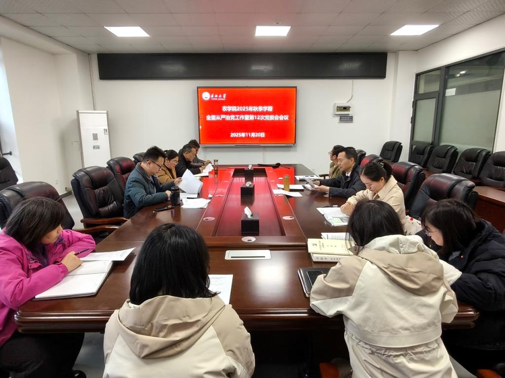 通讯员 刘晓雪 为认真落实全面从严治党主体责任,11月20日上午,公司党委在农科大楼三楼3064会议室召开2025年秋季学期全面从严治党工作会议暨年度第12次党委会会议,公司党委委员、领导班子成员、党建秘书和各党支部书记、科室负责人参加会议,公司党委书记周锦华主持会议。