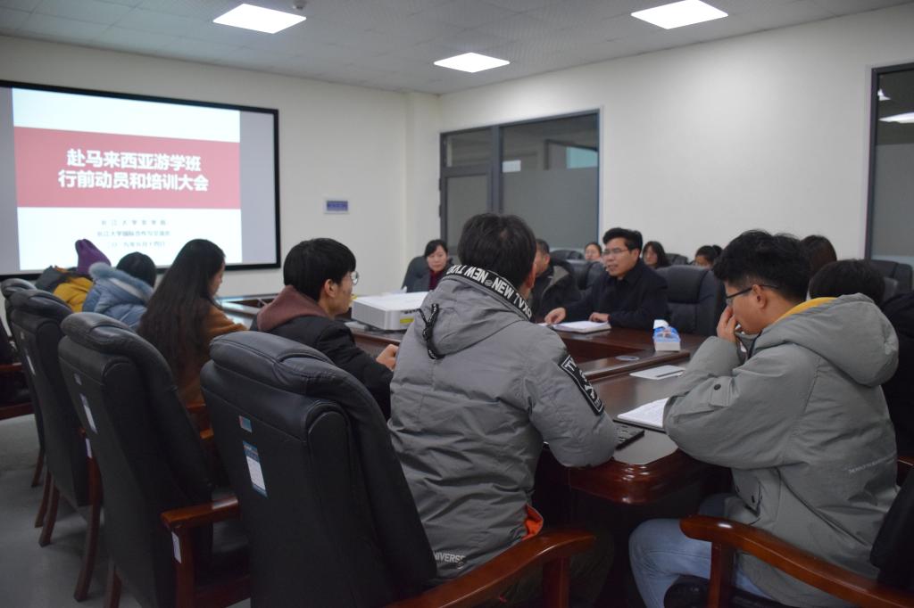 新闻网讯(员工记者 吴畅)1月14号下午2点30分,赴马来西亚游学班行前动员和培训大会于农科大楼3064召开。国际交流与合作处副处长刘武、王娟老师、老师宋玉婷,公司党委副书记刘金科,辅导员万钰、帅婉璐和游学班全体成员参与此次会议。会议由刘金科副书记主持。