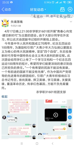 2.活动形式多样化。班团会不限形式,线上讨论、线下学习,并鼓励创新的活动形式,开展如何才能不辜负青春年华的大讨论,邀请班主任走进团会课堂等,有力提高大家参与的积极性,极大增强了班团会的趣味性。