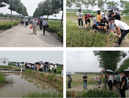 途中,金涛博士为同学们讲解了长江中下游北部水稻绿色低碳栽培关键技术及节本丰产高效栽培模式示范区、油稻轮作区氮磷在土壤-植物系统中的分配及运转特征实验田、三熟区水稻一种两收的资源高效利用及腋芽再生的生物学机理实验田等的实验设计和基本原理,使同学们对再生稻也有了接触和了解。