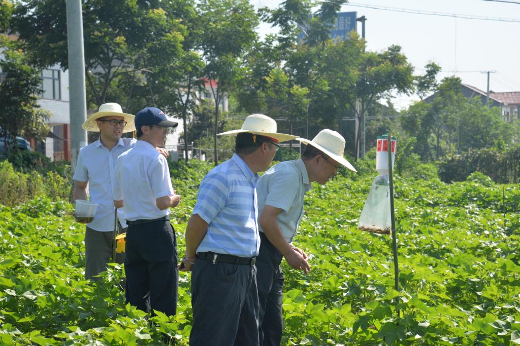 考察现场,公司朱建强教授团队骨干吴启侠博士分别对“麦-瓜-棉集成的秸秆还田技术、增施有机肥、肥料深施、薄膜覆盖加机械中耕物理除草、性诱剂诱杀、生物防治等化肥农药减施技术,对麦后直播棉集成的秸秆还田与化肥深施、抗虫短季棉直播、有机肥替代、鳞翅目害虫性信息素诱杀、生物防治等化肥农药减施技术”进行了详细介绍,其防治效果得到专家的一致好评。