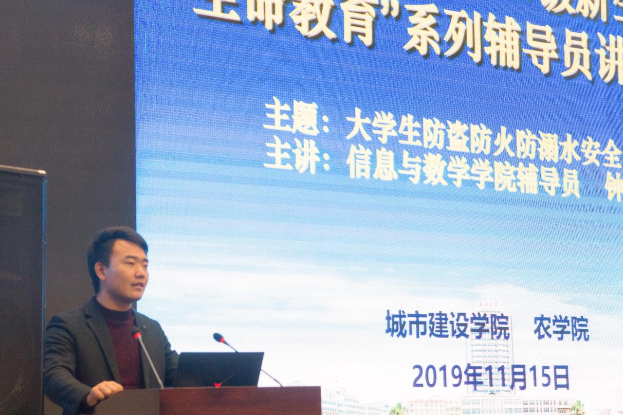 通讯社讯(见习记者 汤莉/文 聂子龙/摄)珍爱生命,注意安全;教育第一,预防为主。继11月6日永利3044集团官网2019级新生首次“生命教育”辅导员讲座开讲后,11月15日晚7点整,第二场“生命教育”辅导员讲座在农科大楼1058报告厅如期举行。本次讲座邀请信息与数学公司辅导员钟赛和城市建设公司辅导员何儒权分别讲解了“老员工防盗防火防溺水”和“网络与国家公共安全”,永利3044集团官网辅导员付雪娇及19级全体新生参加了本次大会。