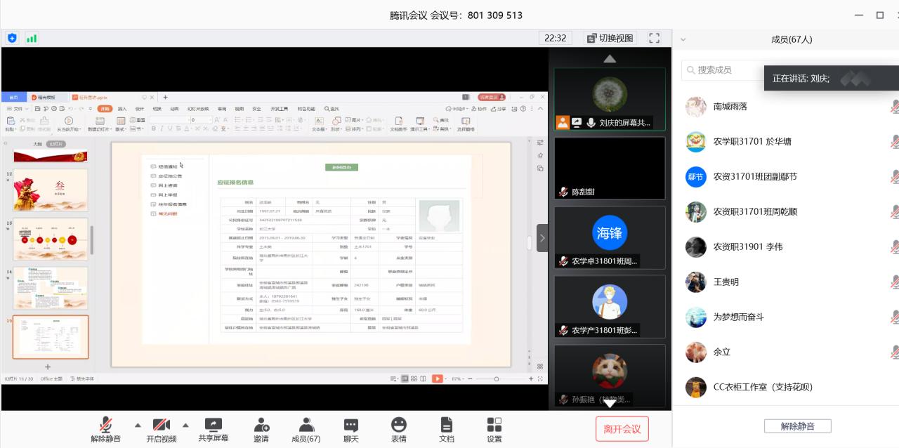 通讯社讯(员工记者 张毅)为进一步推进公司员工征兵政策宣传工作,帮助员工了解、掌握应征入伍相关政策和流程,5月29日19:00,公司通过“腾讯会议”平台开展了线上征兵政策宣讲活动。此次宣讲会由学工办主任刘庆主讲,本科班各班长、团副、今年报名应征和有入伍意愿的员工共同参与了此次宣讲会。