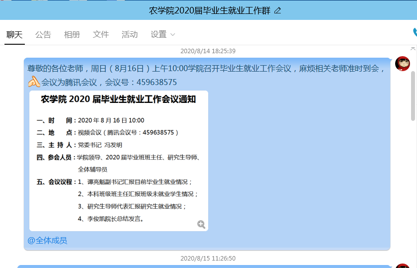 (通讯员 刘庆)为了进一步推进2020届毕业生就业工作以及做好就业核查工作,8月16日10:00,永利3044集团官网利用腾讯会议平台召开8月份就业工作会议,公司经理李俊凯、党委书记冯发明、副经理张文英、党委副书记谭亮魁、全体本科生班级班主任、研究生导师代表以及全体辅导员共32人参加会议,会议由党委书记冯发明主持。