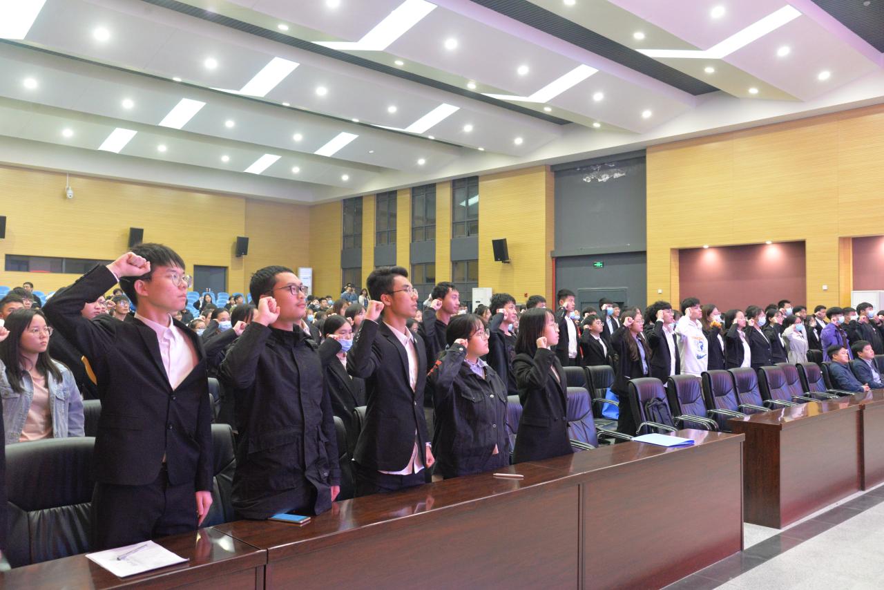 随后,主席会成员代表分别就团委、员工会、宿委会做了详细的工作介绍。员工会主席何泉龙上台带领大家做就职宣誓,坚定而执着的誓词是我们对团学联不变的忠诚,它代表了我们的执着与信念,鼓励我们在不懈中坚持。