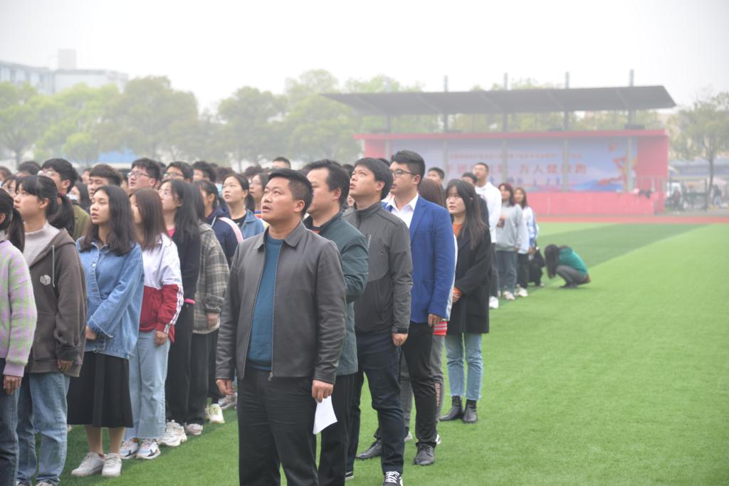 活动最后,由谢作喜副部长为公司员工代表授予旗帜,合影留恋。伴随着领跑员的口号,“千班唱红歌,万人健康跑”活动正式开跑,并由员工代表高举旗帜带领同学们围绕操场进行健身跑活动。至此,本次活动圆满结束。