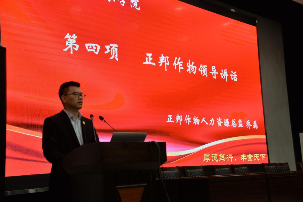 “同学们要学会要以人为本,以正兴邦,要有正能量,要给人呈现一个好的形象,要有一个好的目标,要有三农情怀,为人民,为国家,为中国农业现代化出一份力。”乔总监说道。