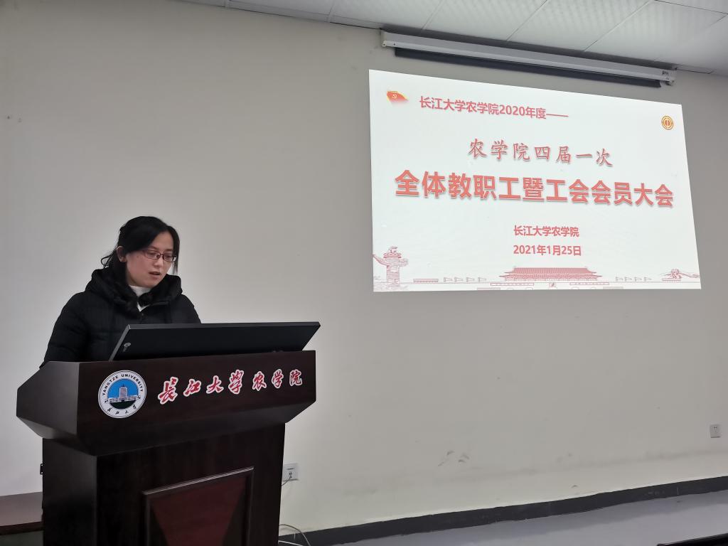 讨论审议后,农学系、植保系、农资系、实管中心、机关依次派一名工会代表上台作阵述性发言,以举手表决的形式通过“两报告一方案”。