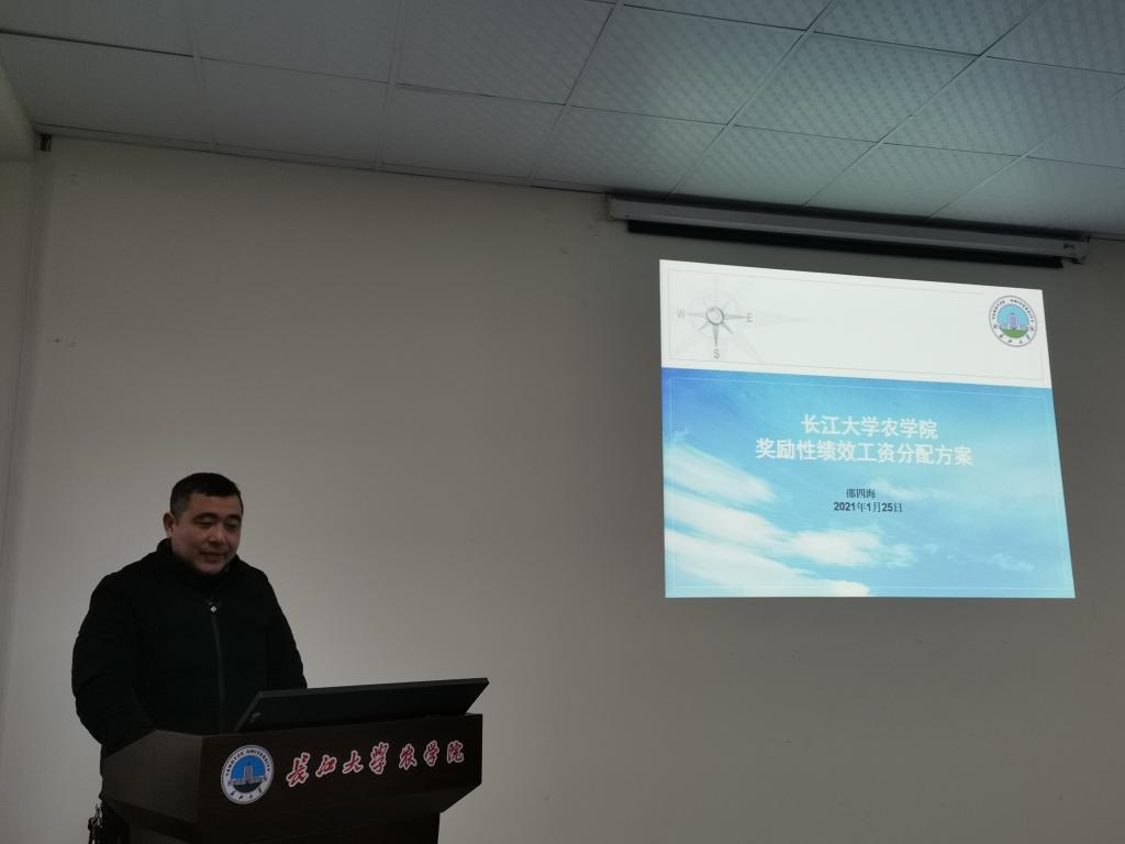 行政副经理邵四海做《2020年财务工作报告》、《2020年教职工绩效奖励分配方案》。