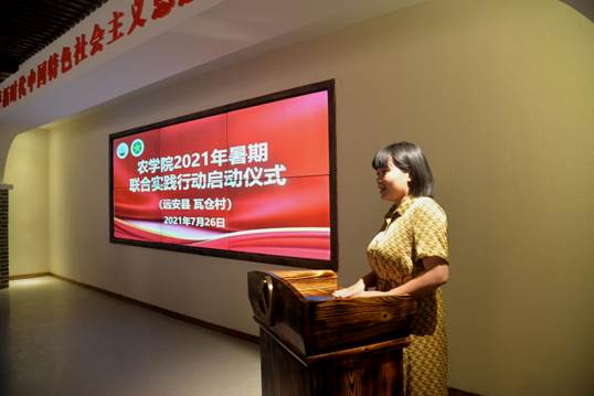 农业农村局副局长刘春艳发言,她指出开展暑期“三下乡”社会实践活动,是落实党史学习教育的重要内容,是全面学习贯彻习近平总书记在庆祝中国共产党成立100周年大会上的重要讲话精神的具体体现,是践行“请党放心,强国有我”誓言的具体实践,对推进学校教育事业发展具有重要的意义,她鼓励同学们要认真开展此次调研活动,为农村发展、产业发展贡献自己的一份力。