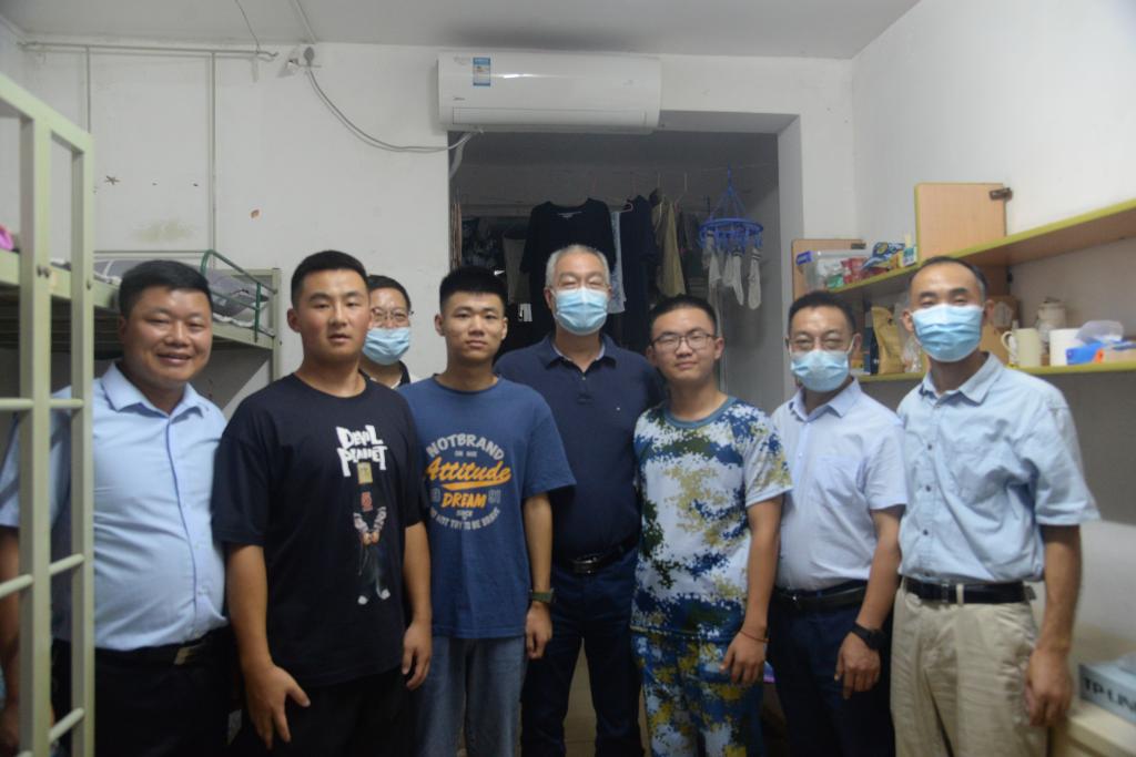 通讯社讯(员工记者 宋健玲 谭昌鑫/摄 张玉藟/文)9月5日傍晚6:50,董事长冯征、经理李俊凯、党委书记冯发明、副经理张文英、党委副书记谭亮魁以及各级辅导员、新生班主任前往公司风华园公寓看望21级新生,送上温暖的关怀和问候。