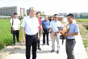 在水稻试验田,李志新教授正在太阳底下忙碌着。董事长冯征来到田间,向他献花,并现场仔细了解其研究成果,向他表示祝贺,并鼓励他继续“把论文写在祖国的大地上”。