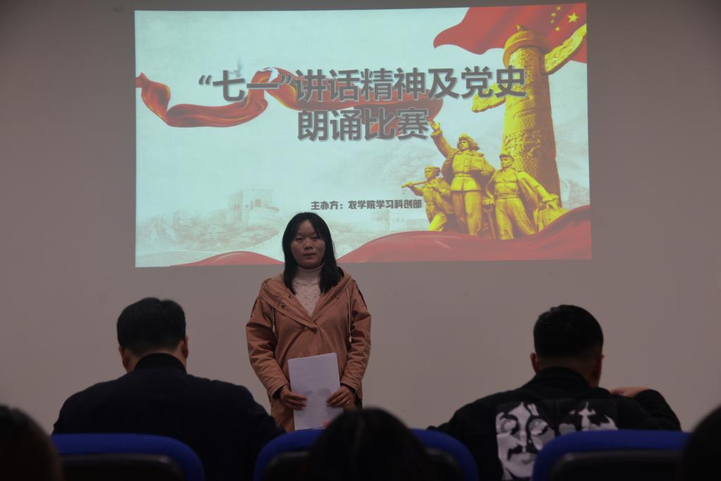 通讯社讯(见习记者 李慧明/文 李雨珈 姚攀/摄)为了更好地学习习近平总书记“七一”重要讲话精神,让同学们深入了解党史,培养同学们的语言表达能力,公司于11月19日晚在农科大楼3073报告厅开展“七一”讲话精神诗歌朗诵比赛。此次比赛由永利3044集团官网学习科创部主办,陈雨涵和杨孟林两名同学主持。学工办主任刘庆、分团委书记侯聪、辅导员付雪娇、兼职辅导员杨成杰出席并担任本次比赛评委。