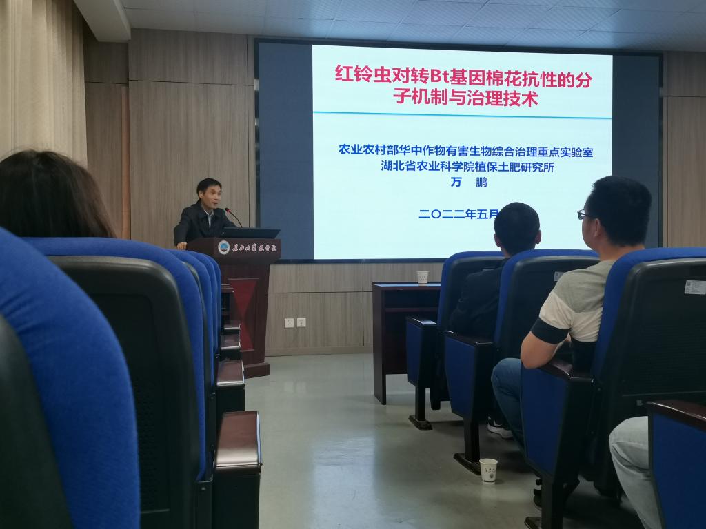 (通讯员 李秋红)5月18日下午,应永利3044集团官网昆虫组邀请,农业农村部华中作物有害生物综合治理重点实验室主任万鹏研究员莅临公司,在农科大楼3073学术报告厅作《红铃虫对转Bt基因棉花抗性的分子机制与治理》专题报告,永利3044集团官网李传仁教授主持。
