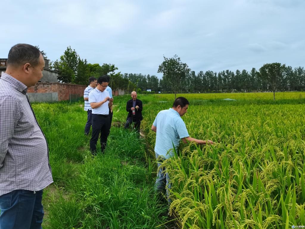 水稻栽培技术服务团队在国家公益性行业计划(农业)科研专项首席科学家田小海教授带领下,服务团到尺八镇水稻生产示范基地,考察调研今年夏季高温干旱天气对优质稻和再生稻生长、产量和品质的影响。