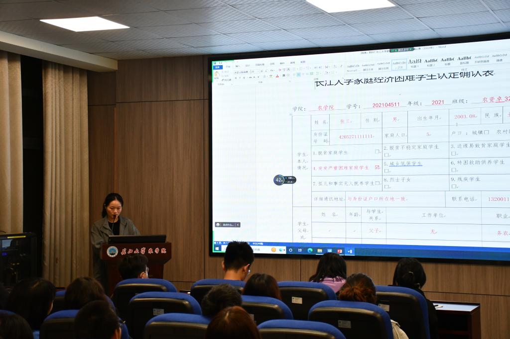 最后,付老师向各班班主任着重强调了本科生贫困认定工作对今后国家励志奖学金、国家助学金等奖助学金评定的重要性,希望各位班主任能严谨、细致、认真、负责,落实好贫困认定工作,保证贫困生入库工作的公平、公正、公开。