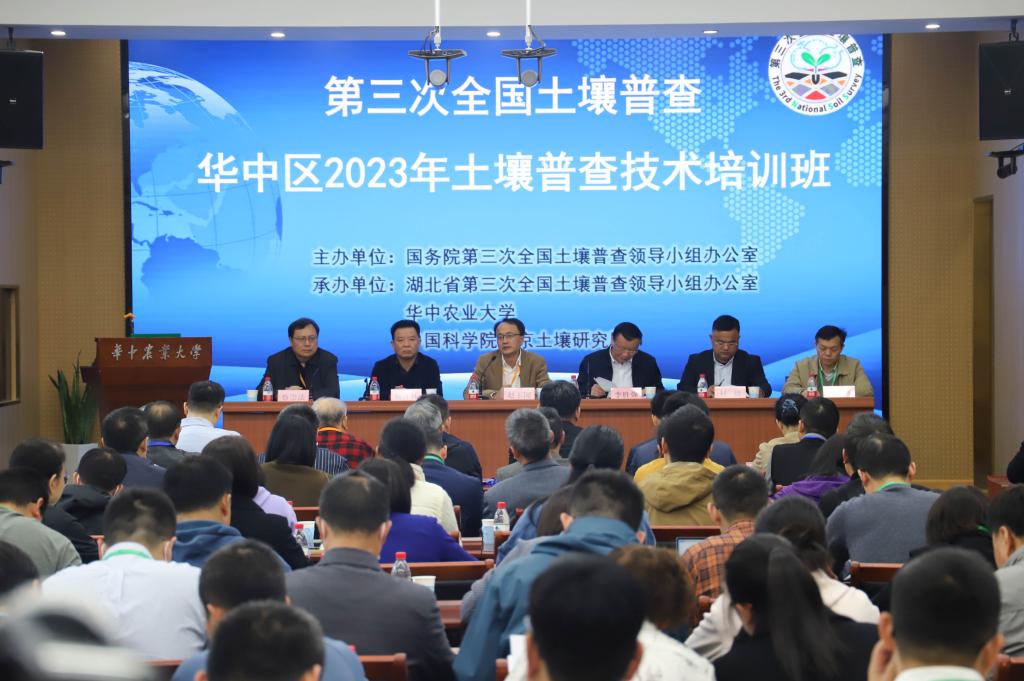 据悉,本次培训由国务院第三次全国土壤普查领导小组办公室主办,湖北省三普办、华中农业大学、中国科公司南京土壤研究所承办,来自江西、湖南、湖北、广东四省土壤普查工作及技术人员100余人参加了培训。全国土壤普查办外业技术组组长、中国科公司南京土壤研究所研究员赵玉国,湖北省土壤普查办主任、湖北省农业农村厅副厅级领导李胜强,华中农业大学党委副书记、副董事长姚江林等出席开班仪式。