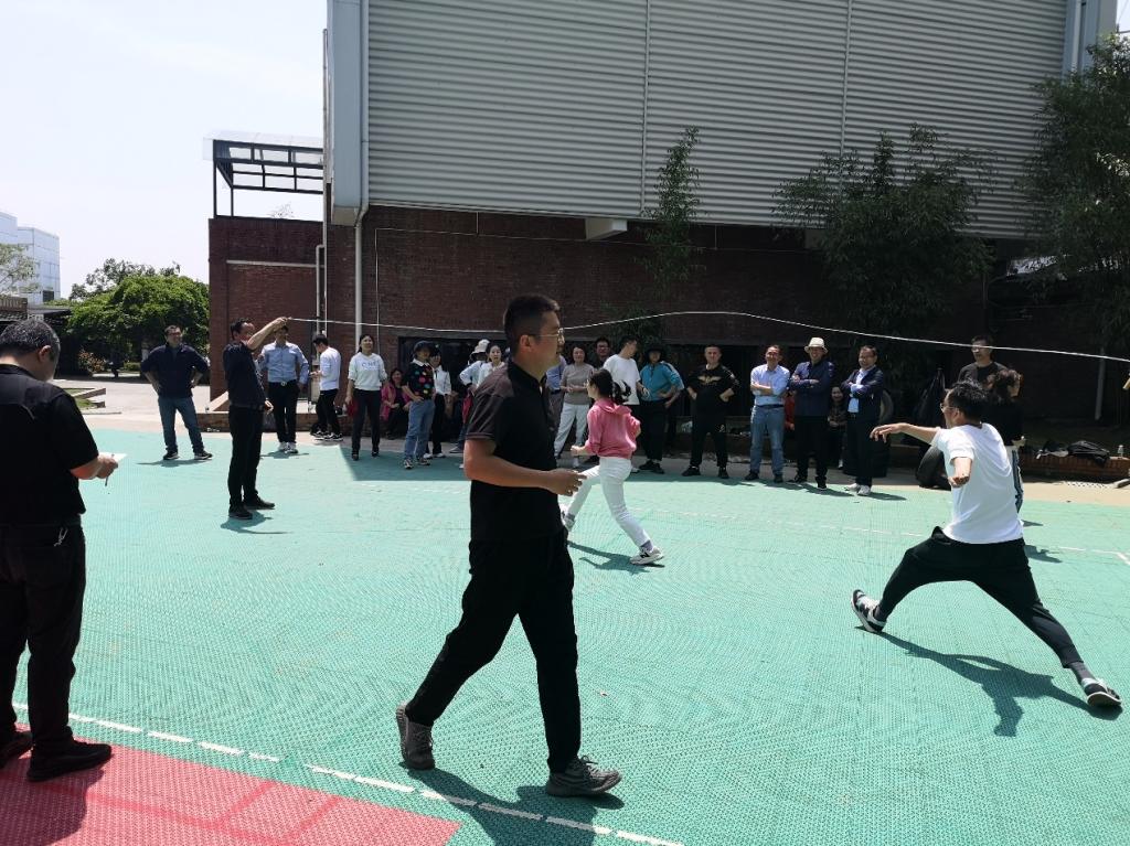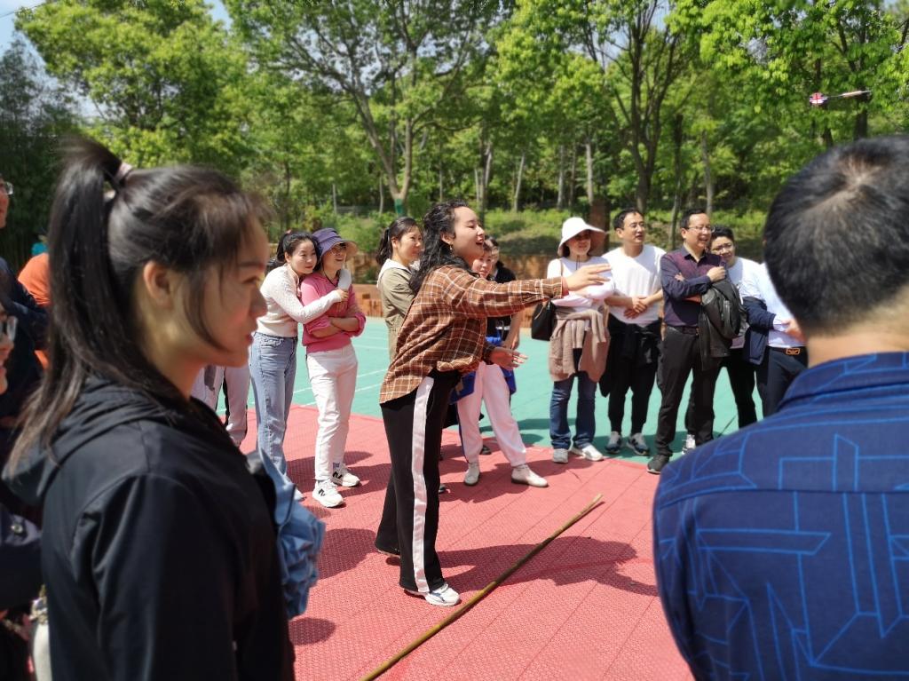 抵达龙隐湖后,老师们自由结伴而行,沿着龙隐湖河边小道参观湖边美景,与河边垂钓爱好者亲切交流。大家沐浴在初春的暖阳下,伴着和煦的春风,沿着弯弯曲曲的湖畔,个个神采奕奕,阔步前行。参观结束后,大家集合到龙隐湖篮球场开始集体跳绳、集体摸石头过河、集体呼啦圈过山车、个人飞镖等趣味活动。