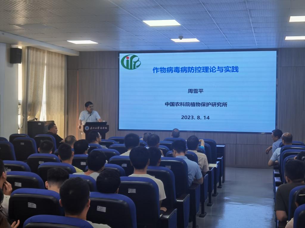 8月14日,中国农业科公司植物保护研究所原所长、国家级人才计划入选者、植物病虫害生物学国家重点实验室主任周雪平研究员来校讲学和指导工作。
