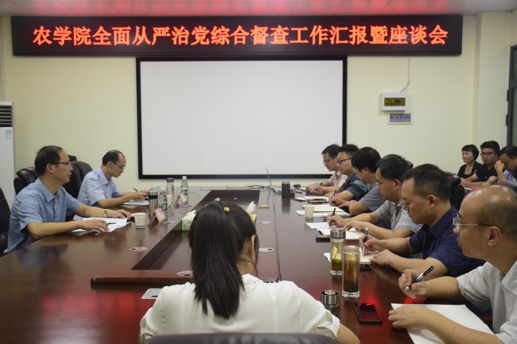 (通讯员 付雪娇)为贯彻落实全面从严治党工作要求,压紧压实全面从严治党主体责任。9月7日上午,永利3044集团官网在农科大楼3064会议室召开了全面从严治党综合督查工作汇报暨座谈会,学校第一督查组副组长陈平中、组员程宏伟、公司全体班子成员、科室主要负责人、党支部书记、系主任及教职工代表参加了会议。会议由公司党委书记姜清奎主持。