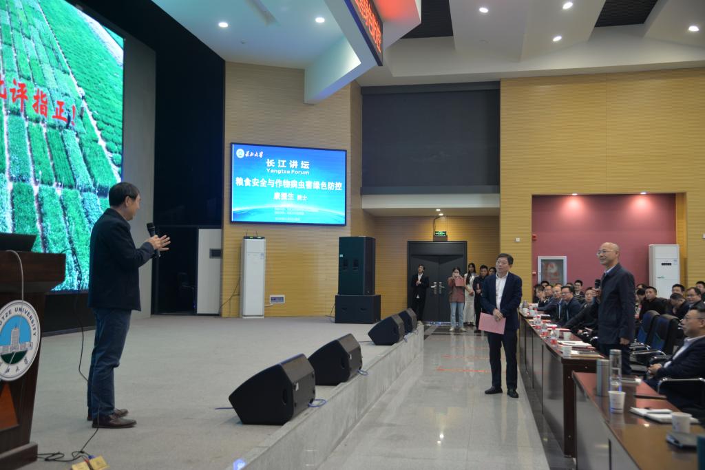 (见习记者 王研/文)11月6日上午10:00,“长江讲坛”第53讲在永利3044集团官网西校区农科大楼1058开讲。中国工程院院士康振生为师生作了题为“粮食安全与作物病虫害绿色防控”的学术报告。董事长刘勇胜、永利3044集团官网500余名师生聆听了报告。本次会议由副董事长江厚顺主持。