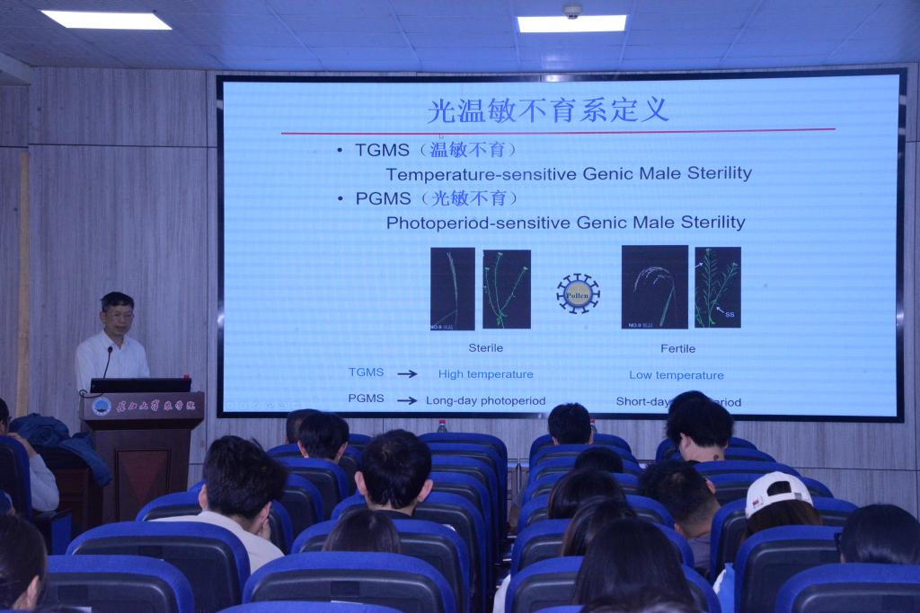 在讲座过程中,杨仲南教授在讲座中详细阐述了作物光温敏不育机制的研究历程,包括光温敏不育基因的克隆与功能研究、光温敏不育材料的创制与应用等方面。同时,杨教授还介绍了新型不育系的创制方法及在我国农业产业发展中的应用前景。讲座内容丰富,理论联系实际,让在座师生对作物光温敏不育机制及新型不育系创制有了更为深入的了解。