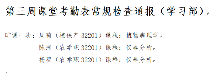 为端正学风、严肃校纪校规,现对全体员工课堂考勤常规检查给予通报。
