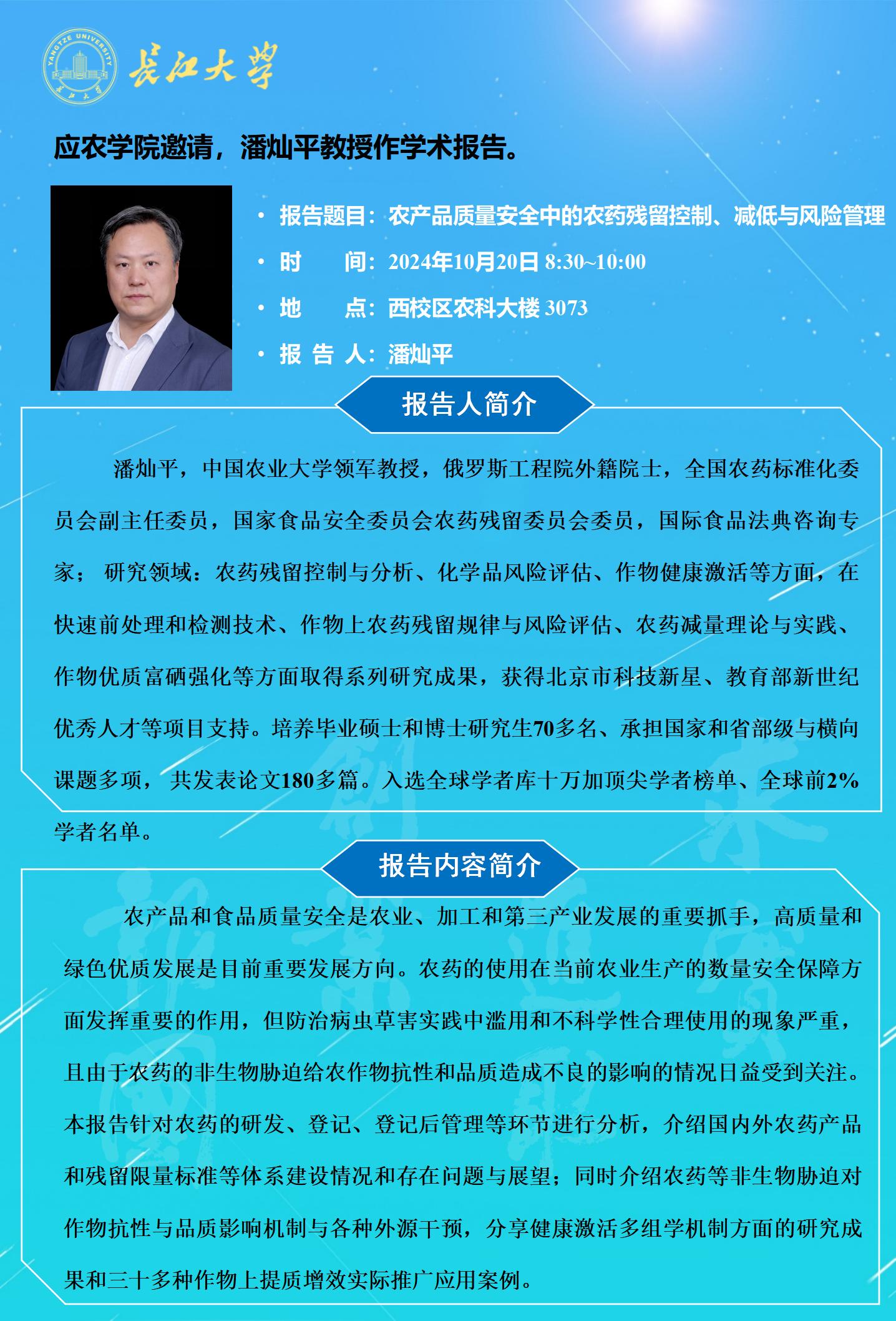 2024年学术报告(十九):农产品质量安全中的农药残留控制、减低与风险管理