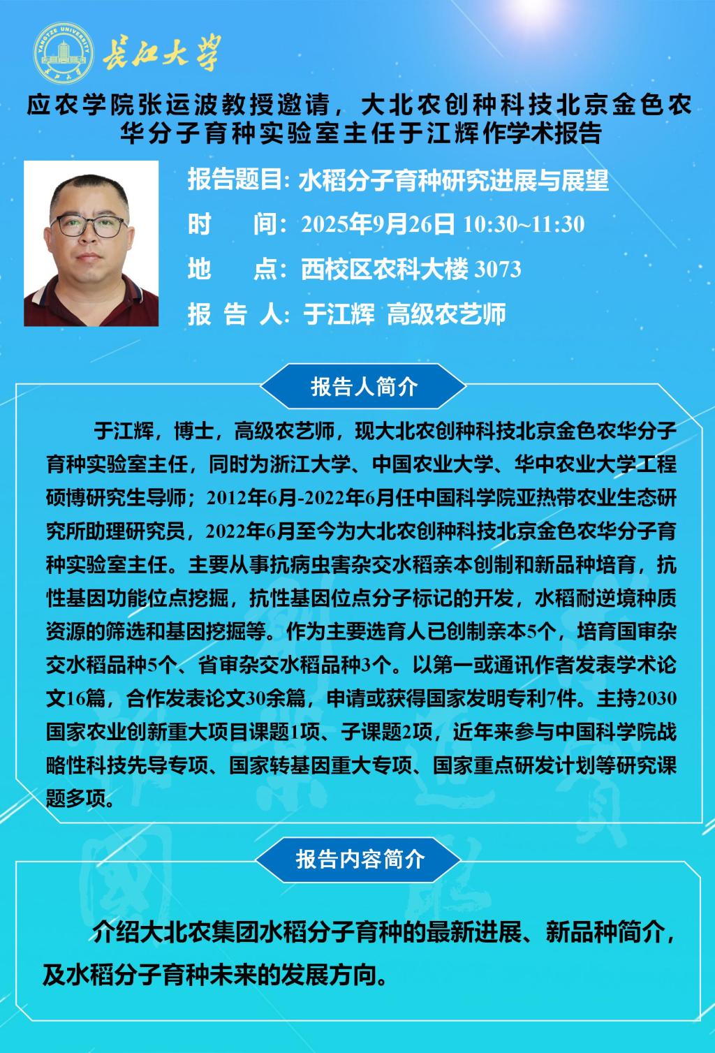 2025年学术报告(二十):水稻分子育种研究进展与展望