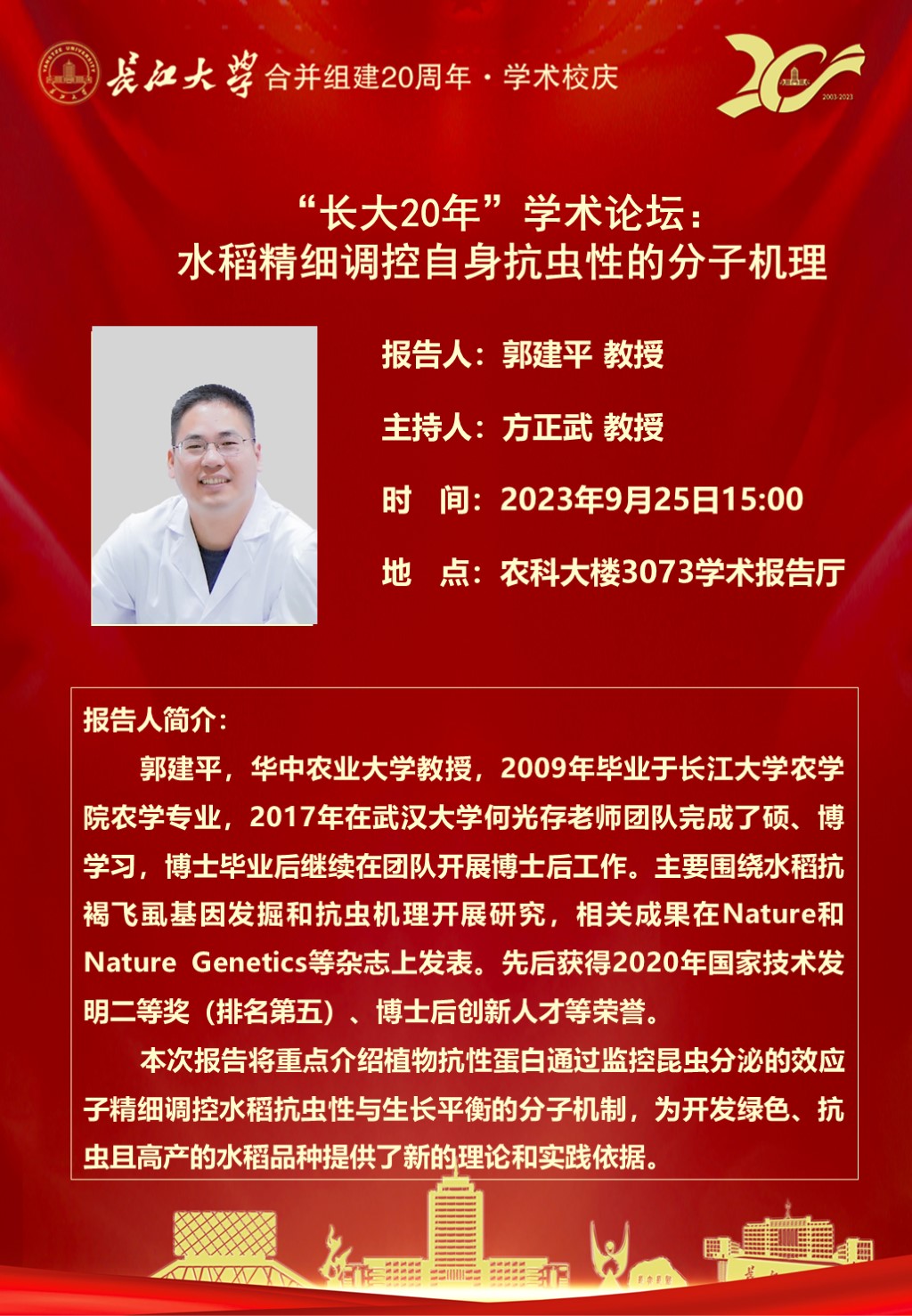 “长大20年”学术论坛暨永利3044集团官网学术讲坛:水稻精细调控自身抗虫性的分子机理
