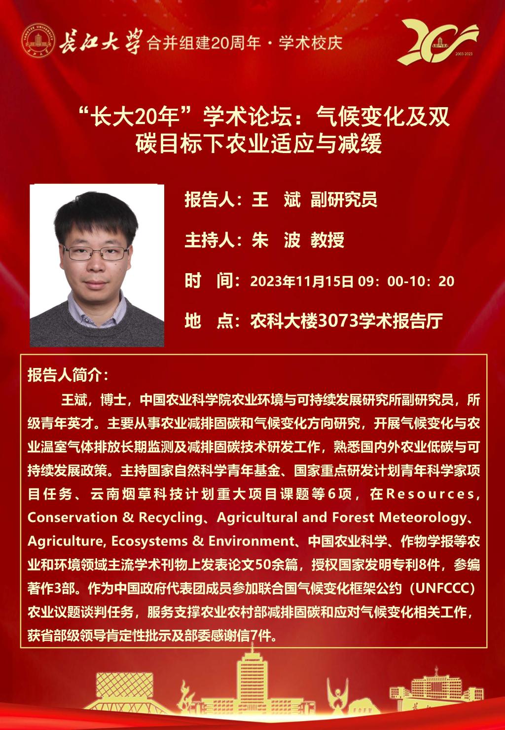 “长大20年”学术论坛暨永利3044集团官网学术讲坛:气候变化及双碳目标下农业适应与减缓