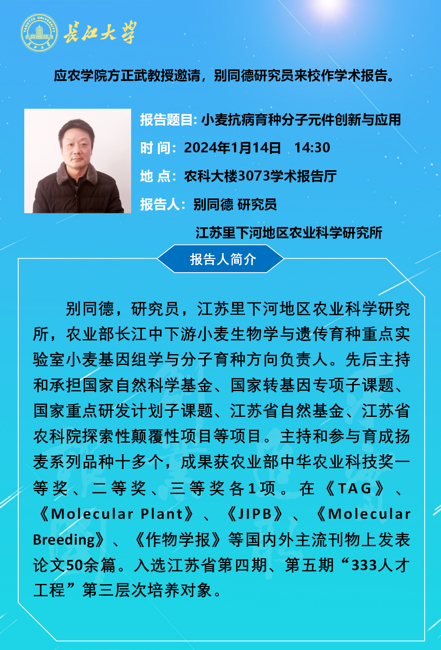 上一篇: 2024年学术报告(六):小麦抗赤霉病育种实践与思考