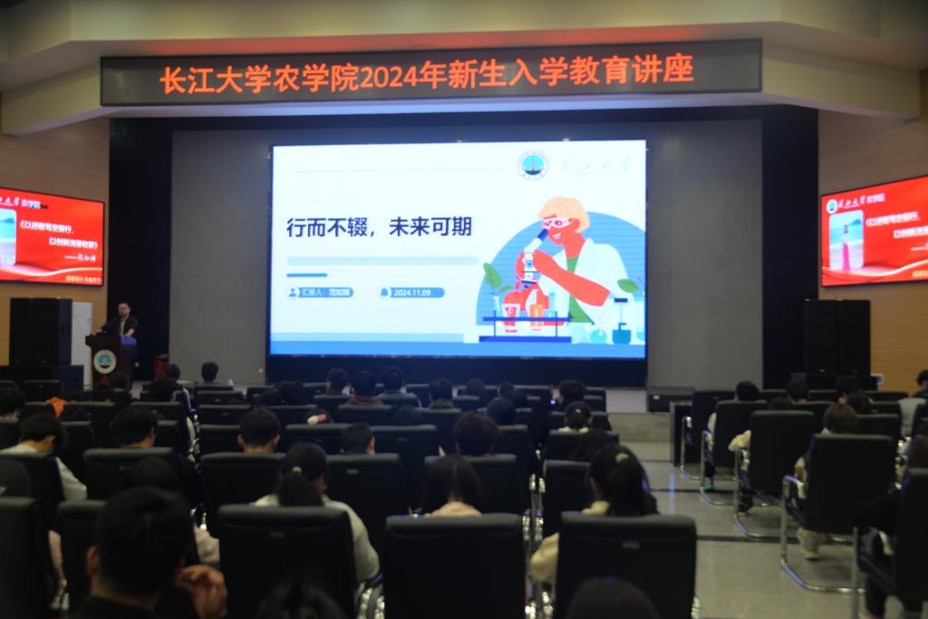 (见习记者 吴静宜/文 吴泓萱/摄)为进一步激发同学们对专业的热情,增强对未来学习方向的认识与理解,11月9日16:00,永利3044集团官网邀请员工现华中农业老员工科院博士后范如旖在农科大楼1058进行“以进取笃定前行,以创新浇灌收获”的新生入学教育专题讲座报告。出席本次讲座的有公司党委副书记尹小华、分团委书记付雪娇、辅导员唐玉婷及2024级全体同学。