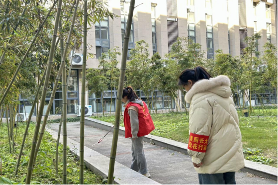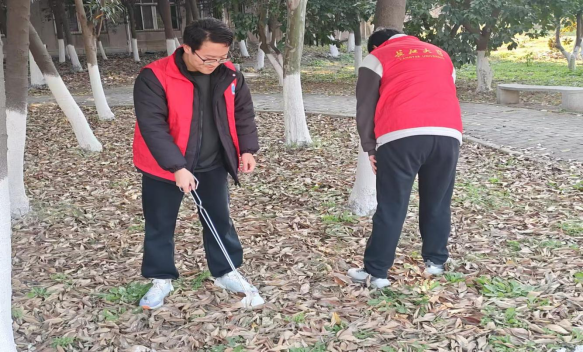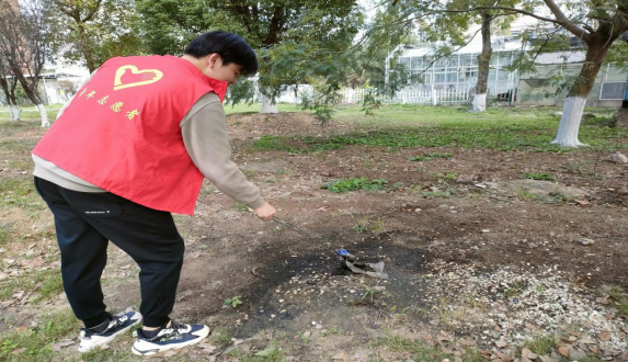 志愿者们手持扫帚,齐心协力清扫着落叶和杂物,大家分工明确,有的负责将垃圾扫成一堆,有的则用簸箕将垃圾清理运走。遇到藏在草丛里的包装袋、零食盒,同学们不怕脏、不怕累,徒手将其一一捡起。在校园的花坛边,志愿者们小心地拔除杂草,为花草创造良好的生长环境,让花坛重新焕发生机。