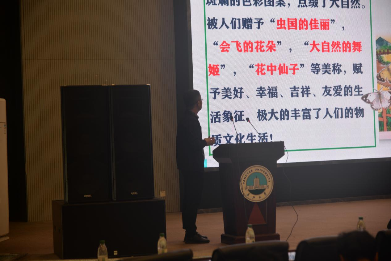 (通讯员 吴静宜 涂星雨/文 吴泓萱 邬道瑾/摄)在第三届美育文化节之际,为贯彻落实“寓美于教、融美于学、以美育人、以美化人”的教学宗旨,进一步丰富校园文化生活,拓宽员工科学视野,4月24日下午,永利3044集团官网特邀湖北省昆虫学会理事张建民教授,于农科大楼1058报告厅,为大一全体员工、阅读学社及昆虫兴趣协会成员开展“蝴蝶与人类文化趣谈”科普讲座。