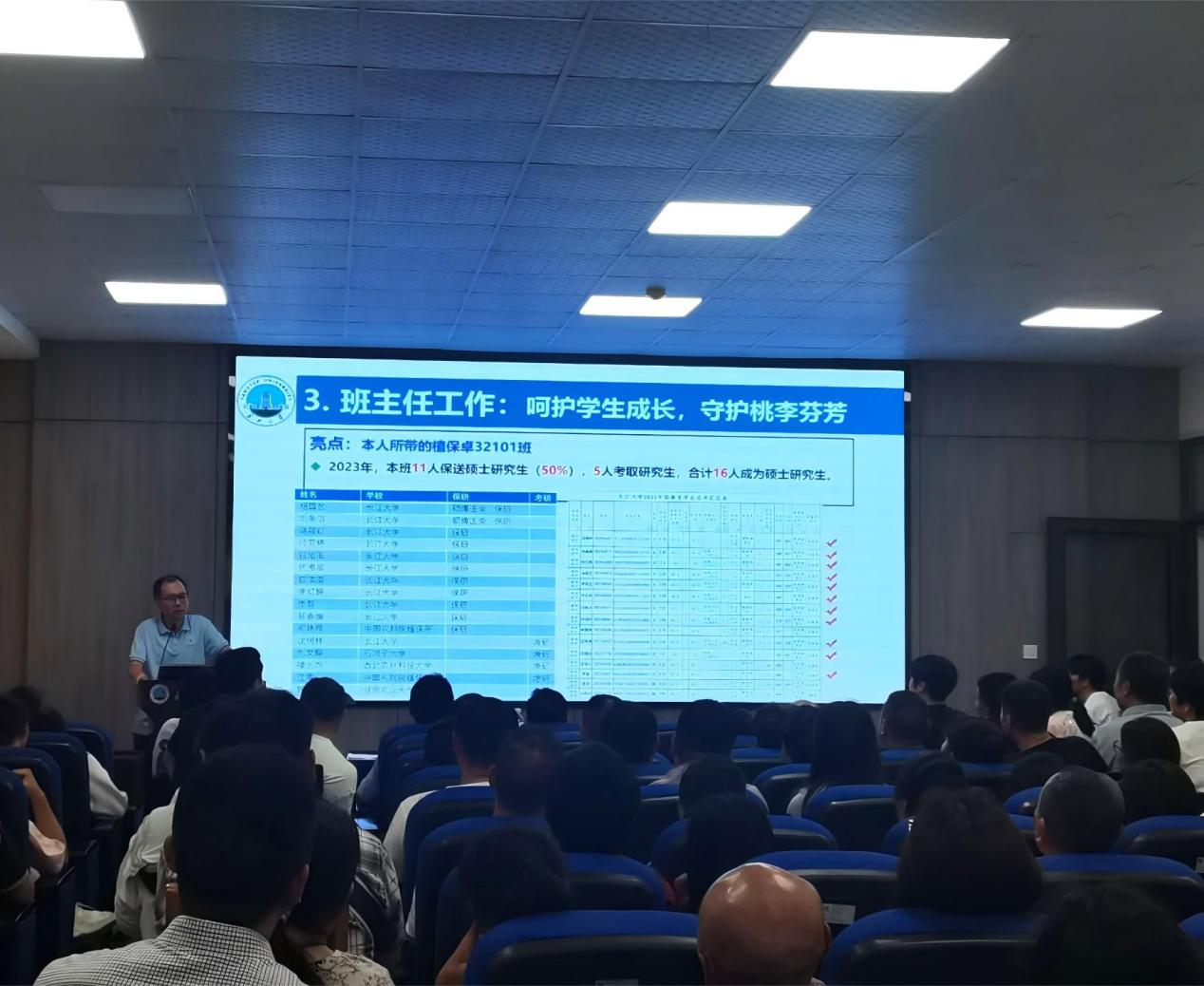 马东方教授阐述了班主任工作理念,“呵护员工成长,守护桃李芬芳”,并强调以研促教,助力员工成才。