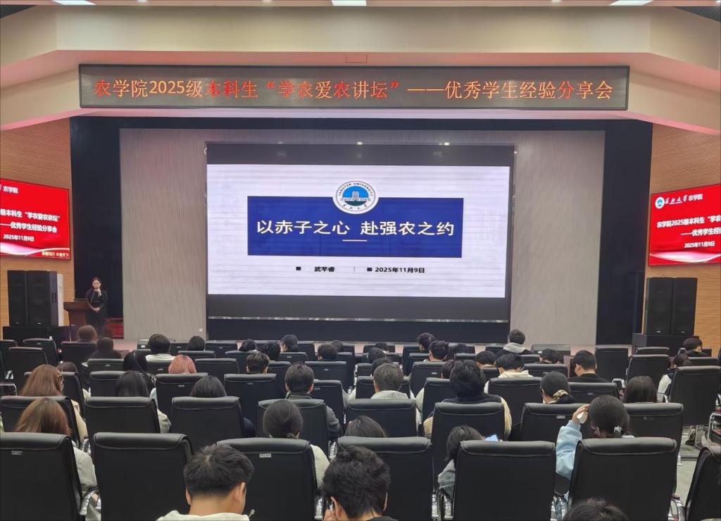 此次 “学农爱农讲坛” 的成功举办,不仅为新生搭建了交流学习的优质平台,更传递了扎根农业、服务人民的责任担当。相信在榜样的引领下,2025 级农科学子必将以更坚定的信念、更昂扬的姿态,在强农兴农的征程上步履不停,书写属于新时代青年的青春华章。