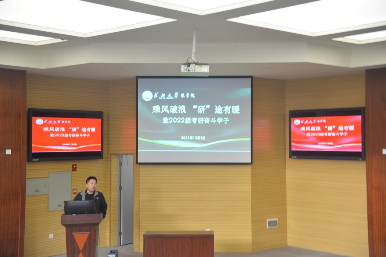 (通讯员 向建华)冬日暖阳浸满报告厅,研途逐梦涌动暖潮。12 月 5 日下午 2:30,农科大楼 1056 报告厅内温情氤氲,永利3044集团官网 “乘风破浪 ‘研’途有暖” 2022 级考研学子关怀活动如期而至,为即将奔赴考场的逐梦者们送上专属关怀与助力。