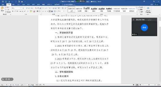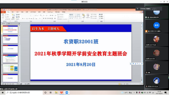 为进一步落实学校《关于做好2021年秋季学期开学准备工作的通知》要求,确保秋季学期开学工作平稳有序,根据学校疫情防控工作的要求,8月18日-22日,公司由年级辅导员牵头,班主任具体组织,各班利用腾讯会议、QQ群、微信群等形式,组织员工召开2021年秋季学期开学前安全教育主题班会。
