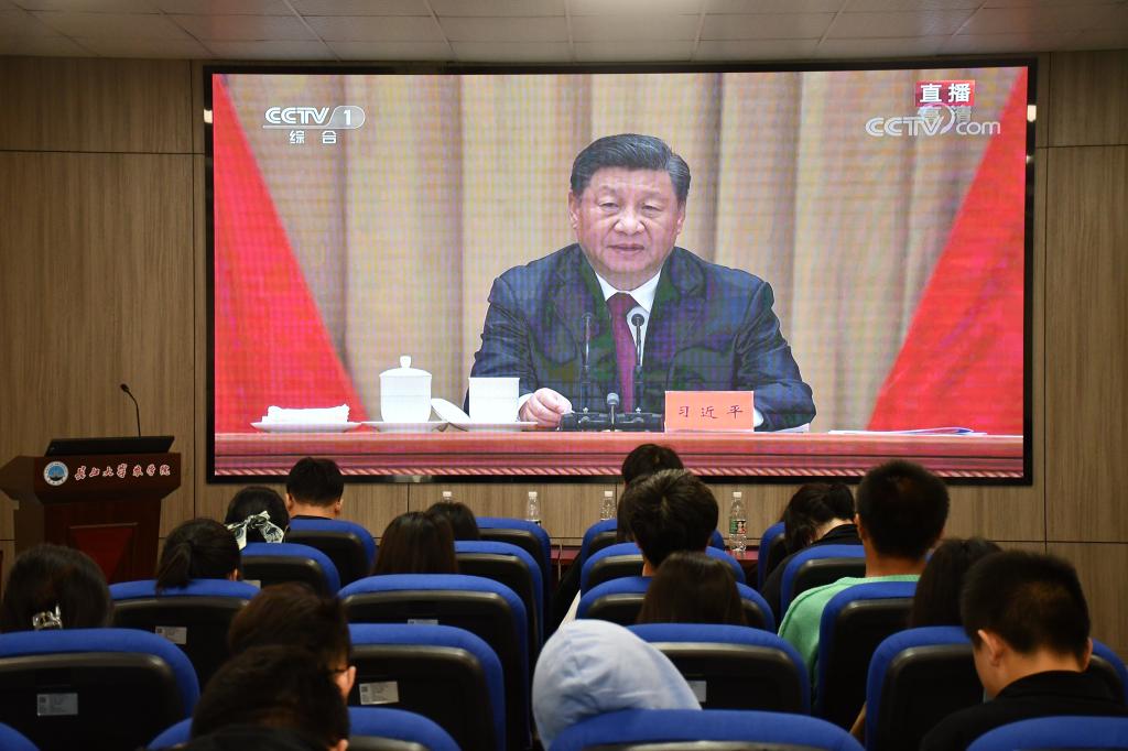 此次大会由于工作日的特殊性分为线上和线下两部分。线上部分组织全体共青团员通过电视、网络、广播等方式进行收听收看,线下部分组织团委员工会和宿委会成员在农科大楼3073共同学习观看。