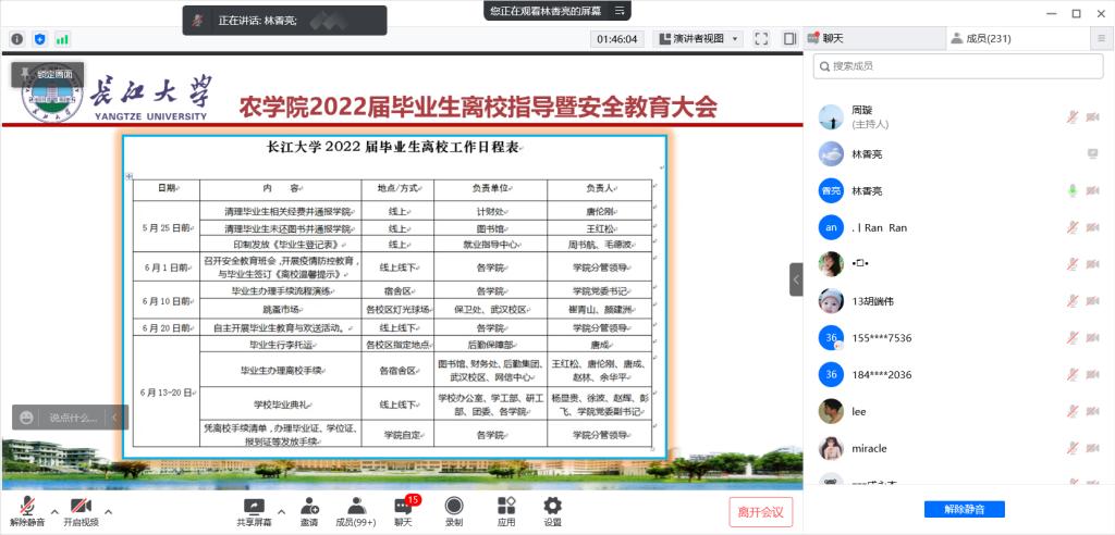 通讯社讯(见习记者 姚攀/摄 杨静/文)为营造和谐温馨的毕业生离校氛围,确保员工安全有序离校,5月26日晚6:20,永利3044集团官网召开2022届毕业生离校指导暨安全教育大会。公司党委副书记尹小华、辅导员林香亮和全体2022届毕业生参加会议。
