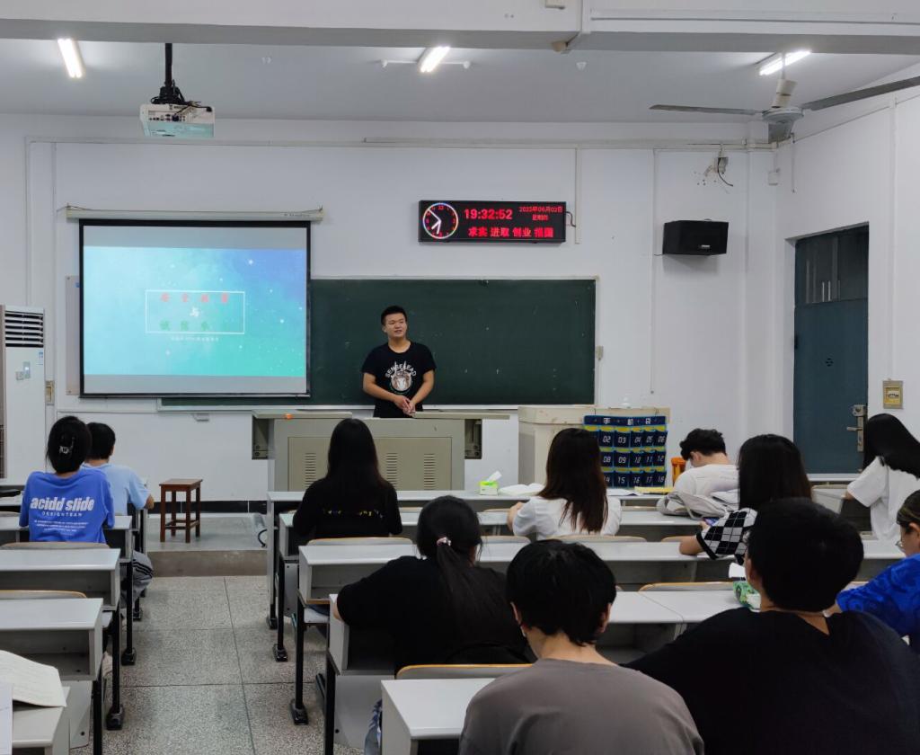 6月2日晚7时30分,植物类32101班在7教205召开主题班会,副班长李梓群就疫情防控教育、防溺水安全教育、反诈安全教育以及诚信参考四个点开展班会。他例举高校员工违反疫情防控政策相关案例以警醒同学们疫情防控形势十分复杂,切不可麻痹大意。防溺水方面,他告诫我们绝不私自下河游泳,绝不擅自与同学结伴游泳,绝不在无安全设施、无救护人员的水域玩耍游泳。而后通过播放广西一名网友分享的落水自救短视频,教授同学们如何在落水后使用“漂浮术”自救。