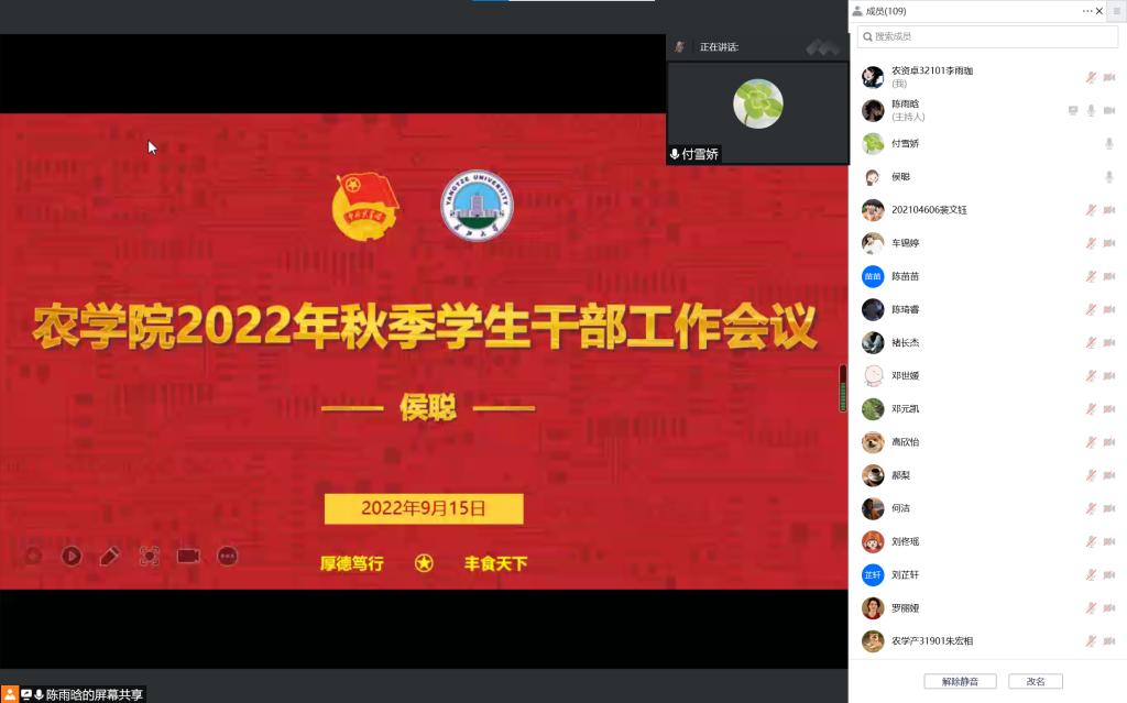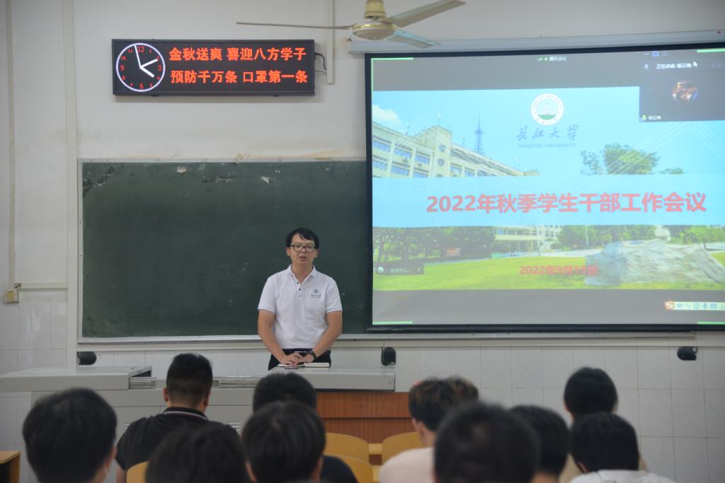 (通讯员 李慧明 艾隆鑫)为使员工干部更明确每位老师工作,加强老师与员工干部的联系,公司于9月15日16:00在2教206以及腾讯会议线下线上同时召开新学期第一次员工干部会议。党委副书记尹小华、分团委书记侯聪、学工办主任杨云锋、研究生辅导员林香亮、21级辅导员付雪娇、22级辅导员何忠万以及全体员工会、宿委会成员和全体班干部参加此次会议。会议在杨云锋老师的主持下有序进行。