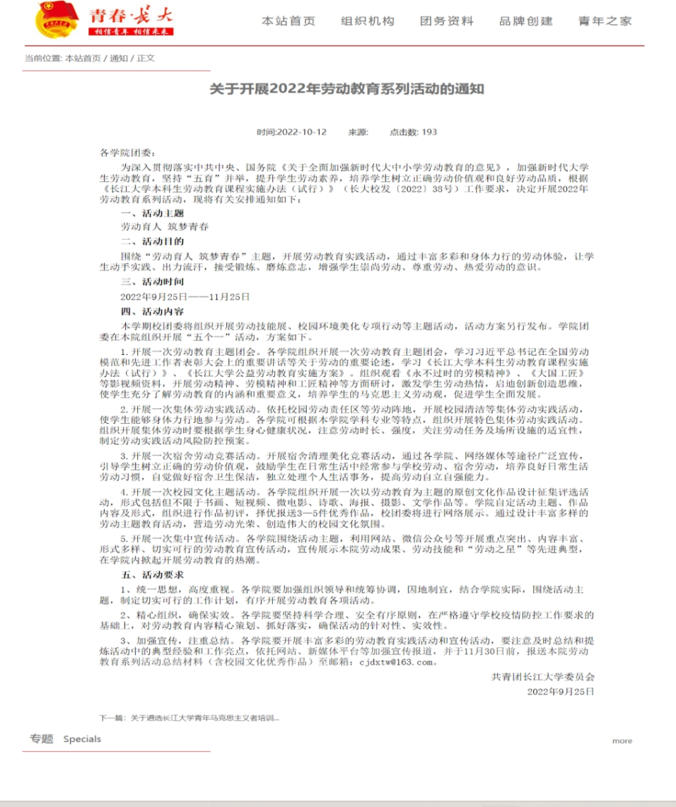 劳动教育系列活动共包含劳动教育主题团会、集体劳动实践活动、宿舍劳动竞赛活动、校园文化主题活动、集中宣传活动五项内容。